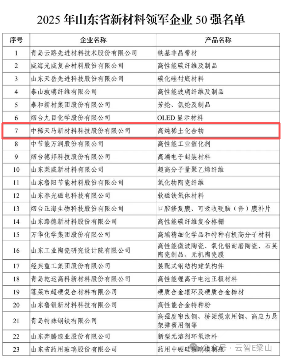梁山一家企业入选2025年山东省新材料领军企业50强