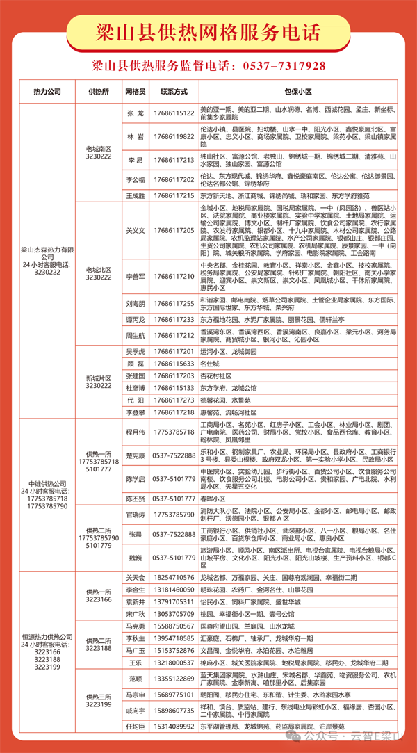 供暧已全面启动,2025-2026梁山供热网格服务电话请收好